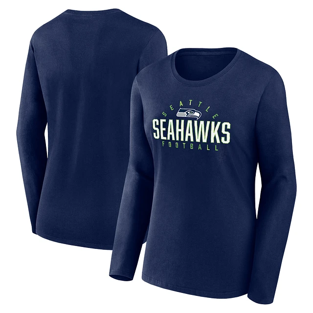 Women's Fanatics College Navy Seattle Seahawks Plus Foiled Play Long Sleeve T-Shirt