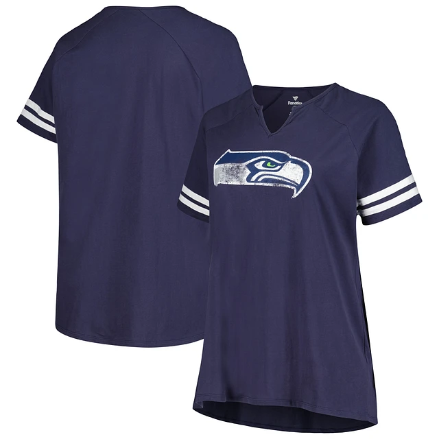 Women's Fanatics College Navy Seattle Seahawks Plus Raglan Notch Neck T-Shirt