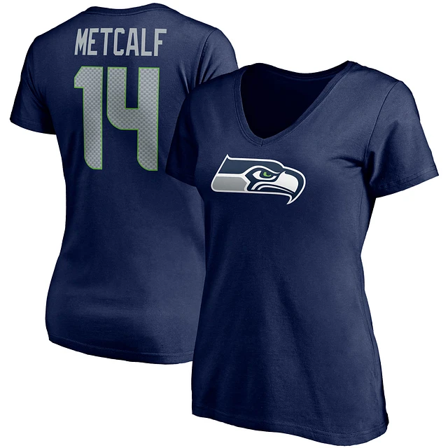 Women's Fanatics DK Metcalf College Navy Seattle Seahawks Player Icon Name & Number V-Neck T-Shirt
