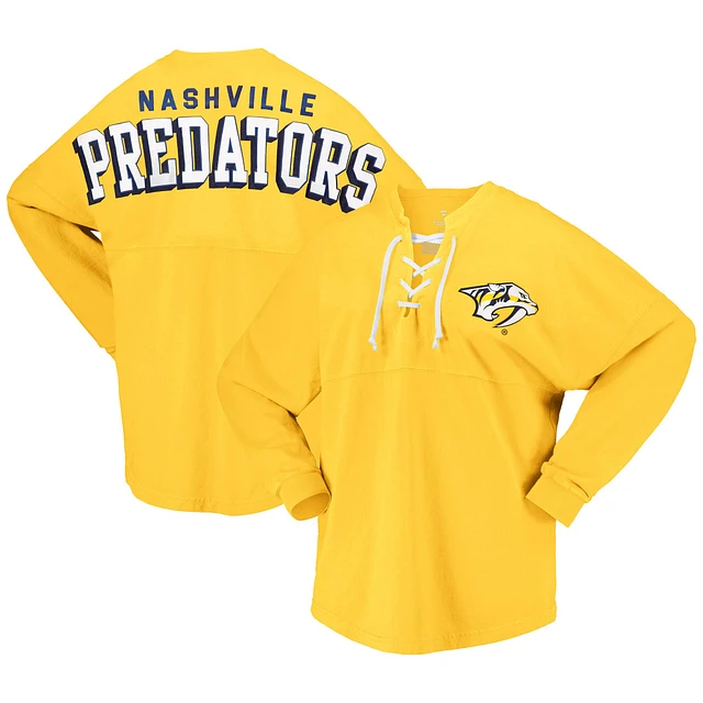 Women's Fanatics Gold Nashville Predators Spirit Lace-Up V-Neck Long Sleeve Jersey T-Shirt