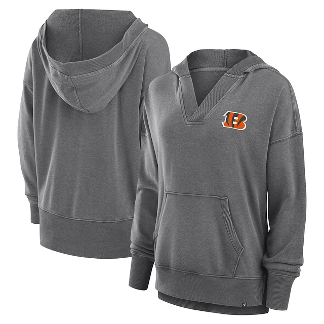 Women's Fanatics Heather Charcoal Cincinnati Bengals Initiative Snow Wash French Terry V-Neck Pullover Hoodie