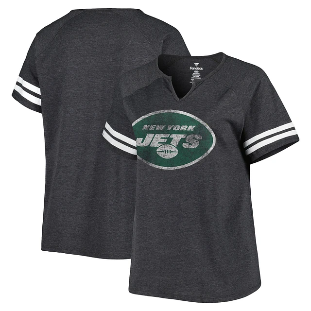 Women's Fanatics Heather Charcoal New York Jets Plus Raglan Notch Neck T-Shirt