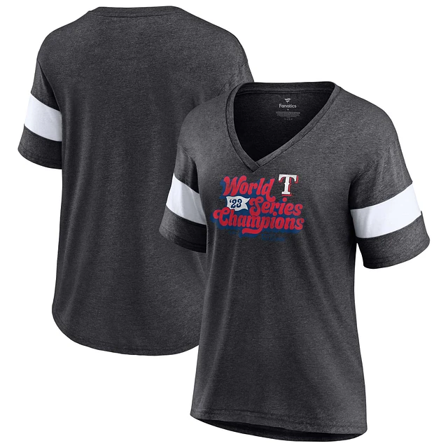 Women's Fanatics Heather Charcoal Texas Rangers 2023 World Series Champions Appeal Play Tri-Blend V-Neck T-Shirt