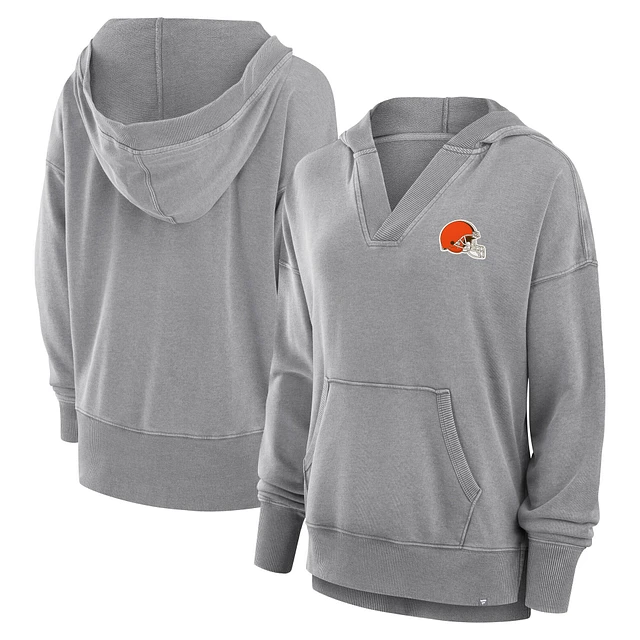 Women's Fanatics Heather Gray Cleveland Browns Initiative Snow Wash French Terry V-Neck Pullover Hoodie