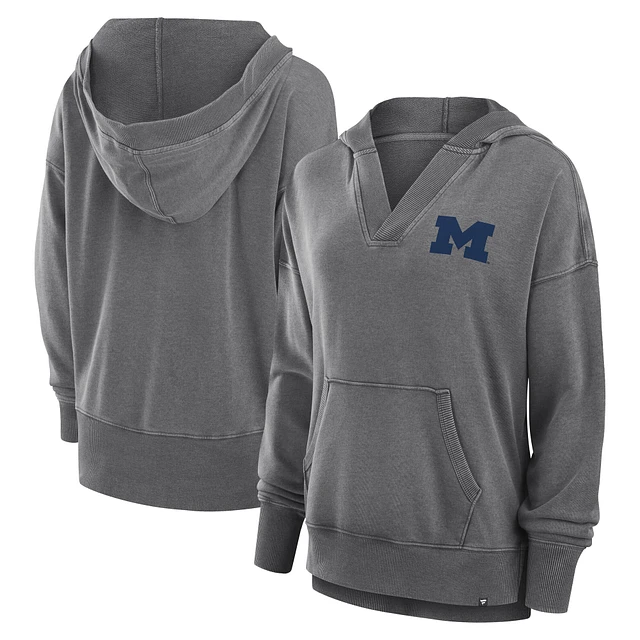 Women's Fanatics Heather Gray Michigan Wolverines Initiative Snow Wash French Terry V-Neck Pullover Hoodie