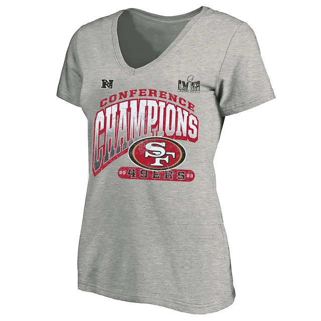 Women's Fanatics Heather Gray San Francisco 49ers 2023 NFC Champions Plus Hail Mary V-Neck T-Shirt