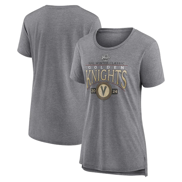 Women's Fanatics Heather Gray Vegas Golden Knights 2024 NHL Winter Classic Distressed Tri-Blend T-Shirt
