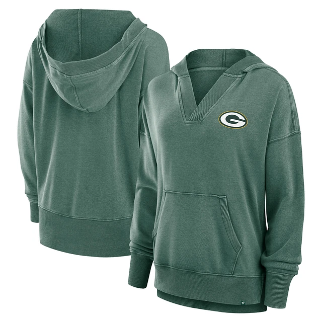 Women's Fanatics Heather Green Bay Packers Initiative Snow Wash French Terry V-Neck Pullover Hoodie