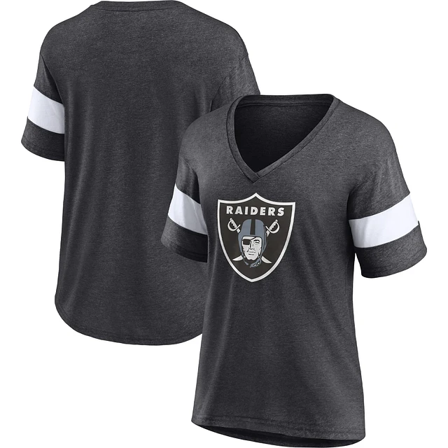 Women's Fanatics Heathered Charcoal Las Vegas Raiders Distressed Team Tri-Blend V-Neck T-Shirt