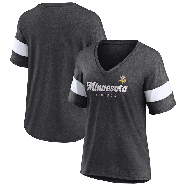 Women's Fanatics Heathered Charcoal Minnesota Vikings Give It All Tri-Blend Half-Sleeve V-Neck T-Shirt