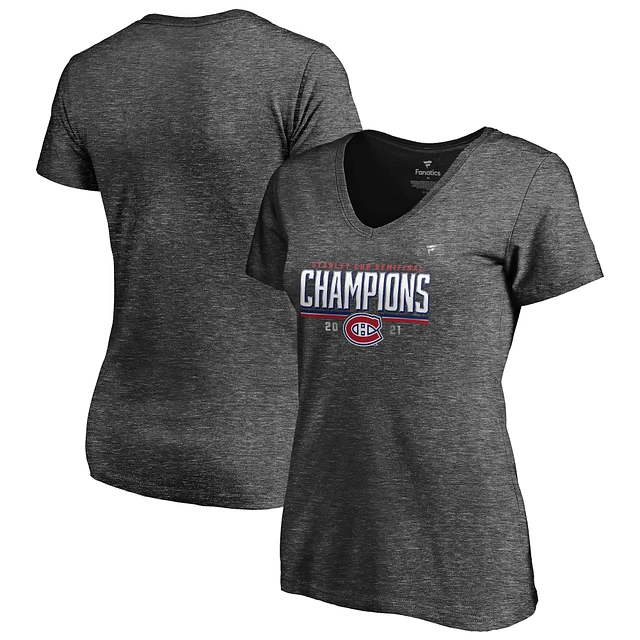 Women's Fanatics Heathered Charcoal Montreal Canadiens 2021 Stanley Cup Semifinal Champions Plus Locker Room V-Neck T-Shirt