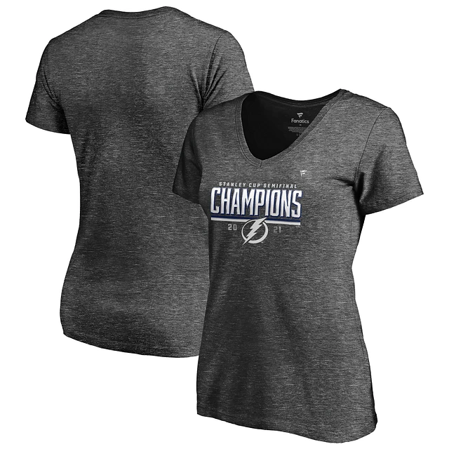 Women's Fanatics Heathered Charcoal Tampa Bay Lightning 2021 Stanley Cup Semifinal Champions - Locker Room V-Neck T-Shirt
