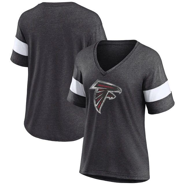 Women's Fanatics Heathered Charcoal/White Atlanta Falcons Distressed Team Tri-Blend V-Neck T-Shirt