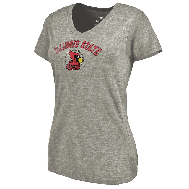 Women's Fanatics Heathered Gray Illinois State Redbirds College Vault Arch Over Logo Tri-Blend V-Neck T-Shirt