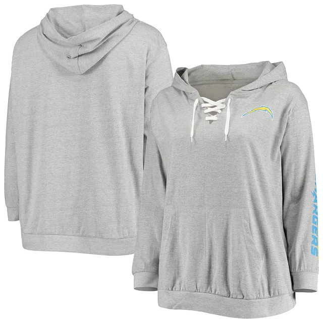 Women's Fanatics Heathered Gray Los Angeles Chargers Plus Lace-Up Pullover Hoodie