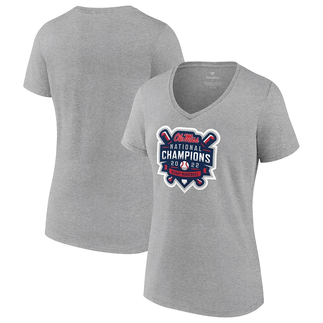 Women's Fanatics Heathered Gray Ole Miss Rebels 2022 NCAA Men's Baseball College World Series Champions Official Logo V-Neck T-Shirt