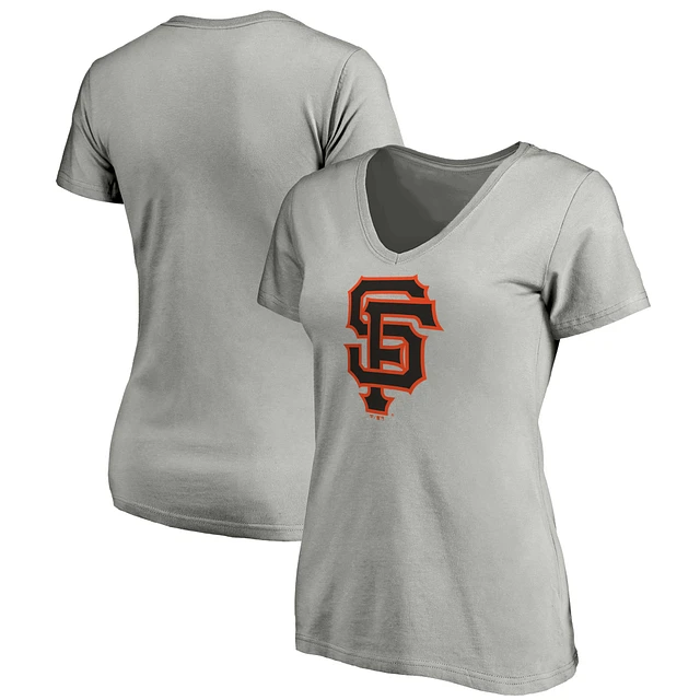 Women's Fanatics Heathered Gray San Francisco Giants Core Official Logo V-Neck T-Shirt