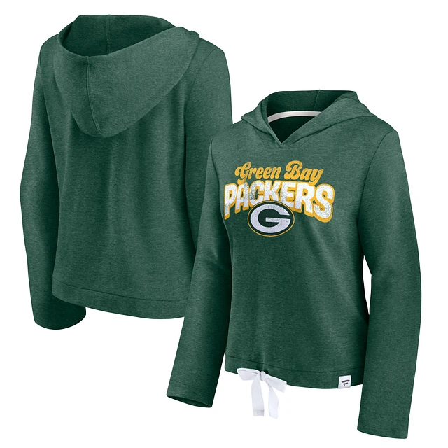 Women's Fanatics Heathered Green Bay Packers True Classics Fleece V-Neck Pullover - Hoodie