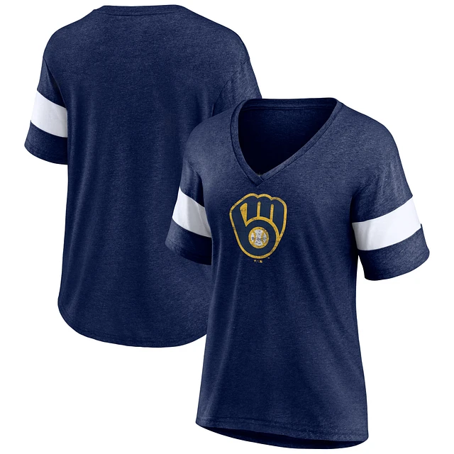 Women's Fanatics Heathered Navy Milwaukee Brewers Weathered Tri-Blend V-Neck T-Shirt