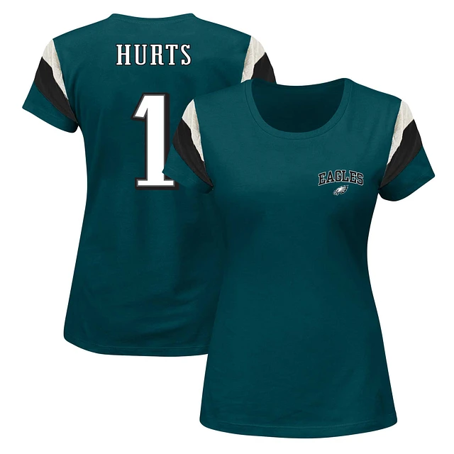 Women's Fanatics Jalen Hurts Green Philadelphia Eagles Plus Sleeve Stripe Name & Number T-Shirt