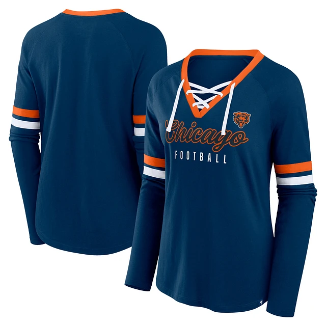 Women's Fanatics Navy Chicago Bears Won and Done Lace-Up Long Sleeve Fashion Top