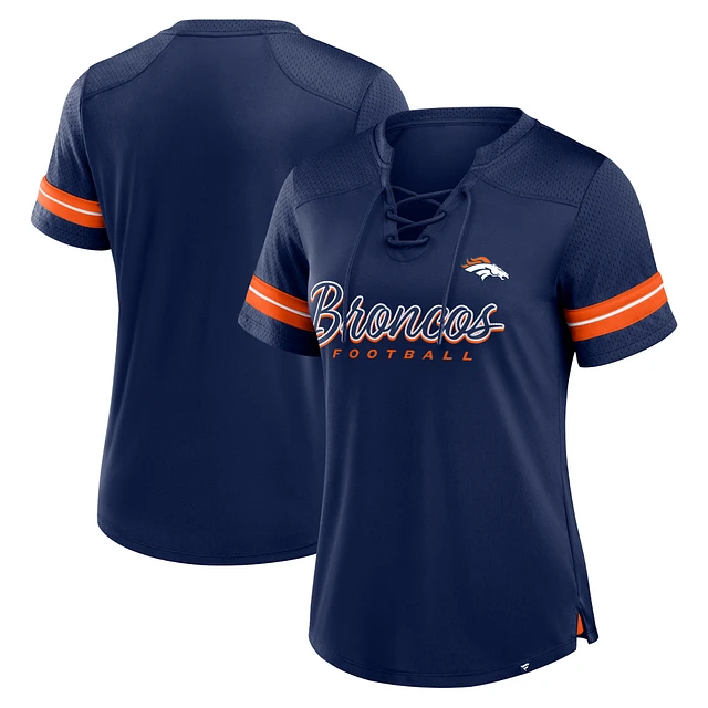 Women's Fanatics Navy Denver Broncos Play Script Lace-Up T-Shirt