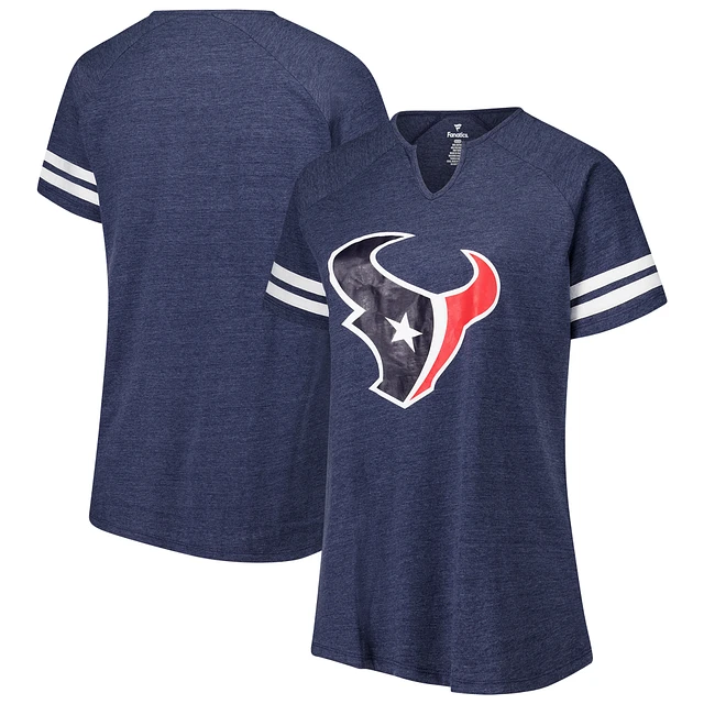 Women's Fanatics Navy Houston Texans Plus Striped Raglan Notch Neck T-Shirt
