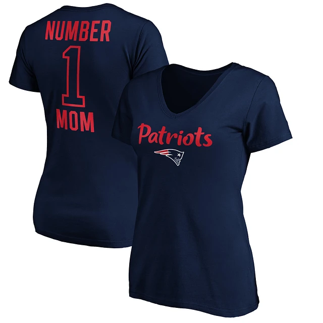 Women's Fanatics Navy New England Patriots #1 Mom Team Logo V-Neck T-Shirt