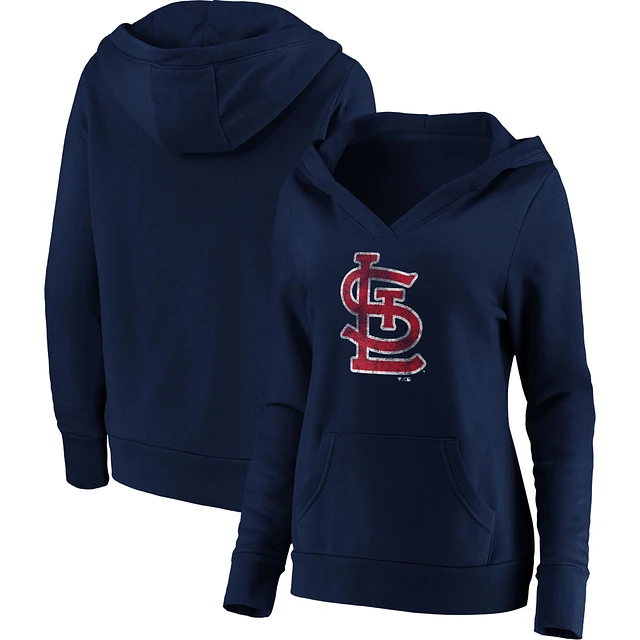 Women's Fanatics Navy St. Louis Cardinals Core Team Crossover V-Neck Pullover Hoodie