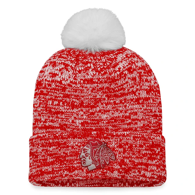 Women's Fanatics Red Chicago Blackhawks Glimmer Cuffed Knit Hat with Pom