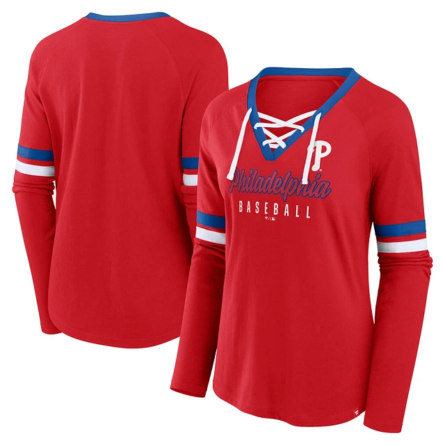 Women's Fanatics Red Philadelphia Phillies Won & Done Raglan Lace-Up Long Sleeve T-Shirt