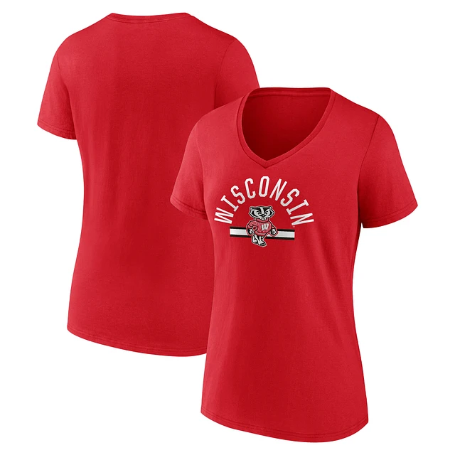 Women's Fanatics Red Wisconsin Badgers Team Logo V-Neck T-Shirt