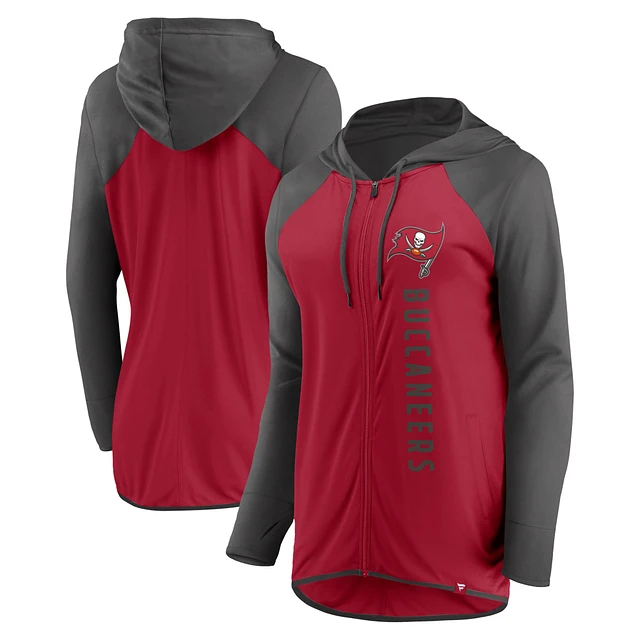 Women's Fanatics Red/Pewter Tampa Bay Buccaneers Redzone End Around Pass Raglan Full-Zip Hoodie