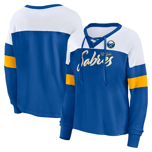 Women's Fanatics Royal Buffalo Sabres Take the Shot Long Sleeve Lace-Up V-Neck T-Shirt