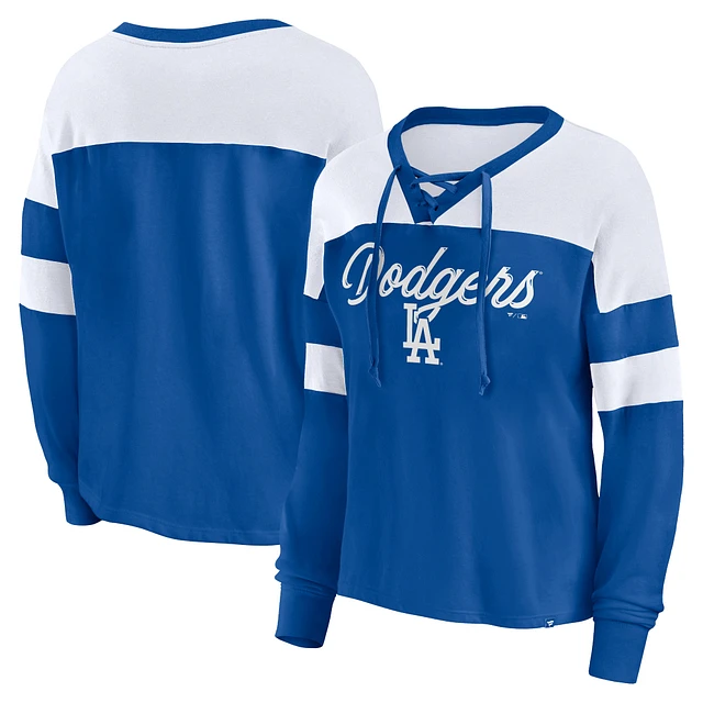 Women's Fanatics Royal/White Los Angeles Dodgers Even Match Lace-Up Long Sleeve V-Neck T-Shirt