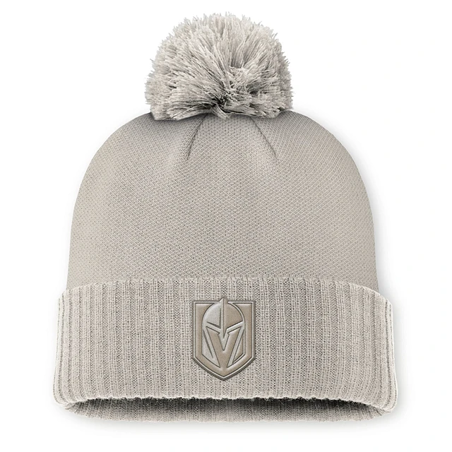 Men's Fanatics Gray Vegas Golden Knights  Authentic Pro Rink Cuffed Knit Hat with Pom