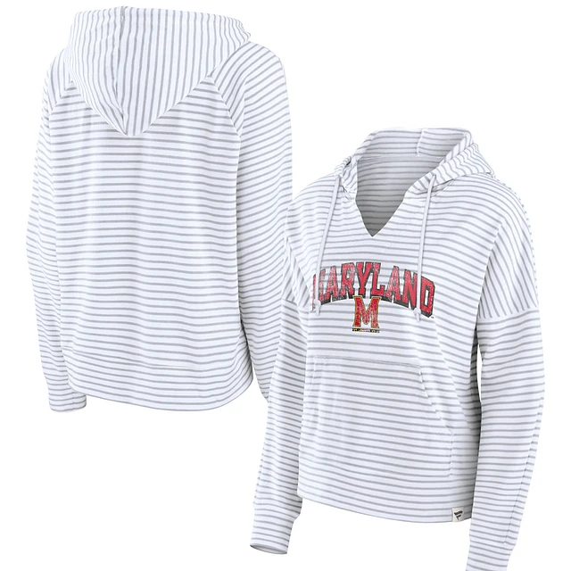 Women's Fanatics White Maryland Terrapins Striped Notch Neck Pullover Hoodie
