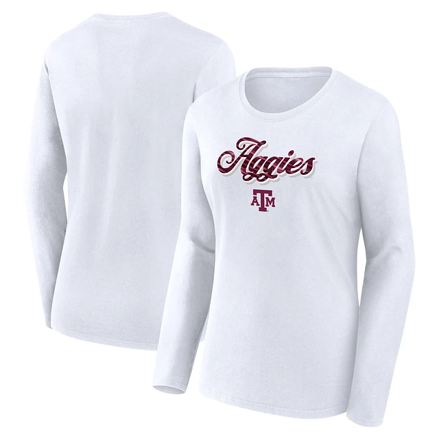 Women's Fanatics White Texas A&M Aggies Double Team Script Long Sleeve T-Shirt