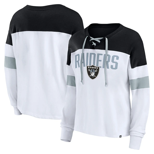 Women's Fanatics White/Black Las Vegas Raiders Even Match Lace-Up Long Sleeve V-Neck T-Shirt