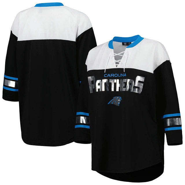 Women's G-III 4Her by Carl Banks Black/White Carolina Panthers Double Team 3/4-Sleeve Lace-Up T-Shirt