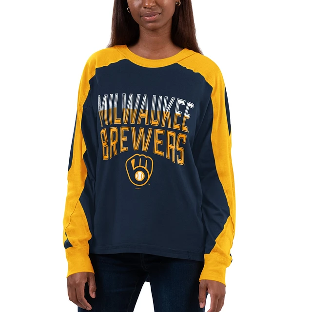 Women's G-III 4Her by Carl Banks Navy/Gold Milwaukee Brewers Smash Raglan Long Sleeve T-Shirt