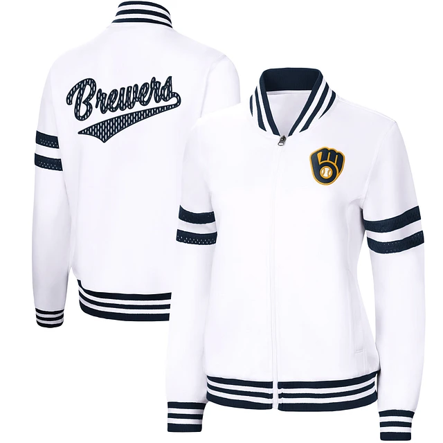 Women's G-III 4Her by Carl Banks White Milwaukee Brewers Pre-Game Full-Zip Track Jacket