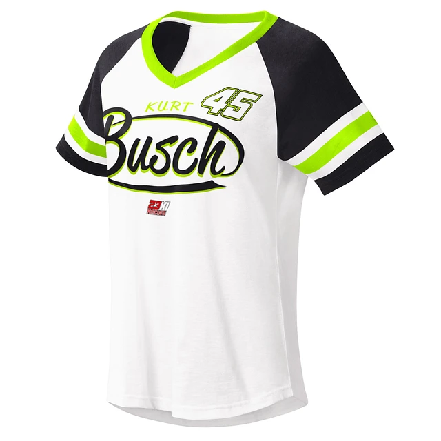 Women's G-III 4Her by Carl Banks White/Black Kurt Busch Circus Catch V-Neck T-Shirt