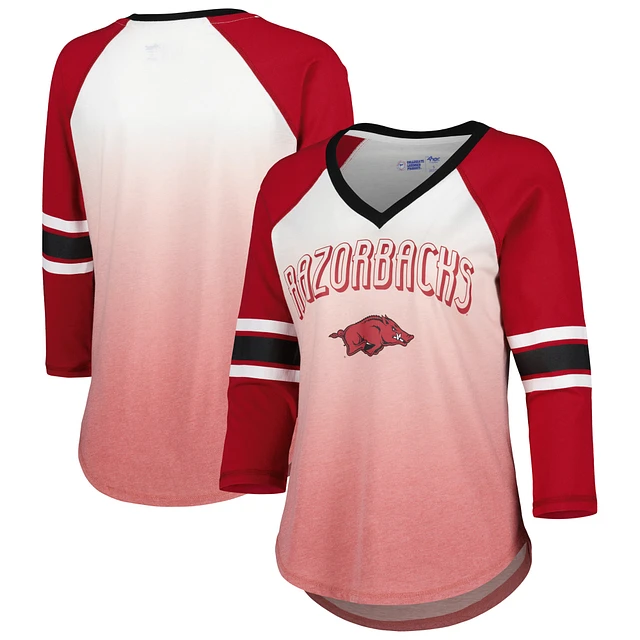 Women's G-III 4Her by Carl Banks White/Cardinal Arkansas Razorbacks Lead Off Ombre Raglan 3/4-Sleeve V-Neck T-Shirt