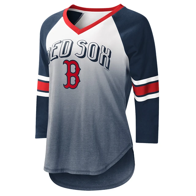 Women's G-III 4Her by Carl Banks White/Navy Boston Red Sox Lead-Off Raglan 3/4-Sleeve V-Neck T-Shirt
