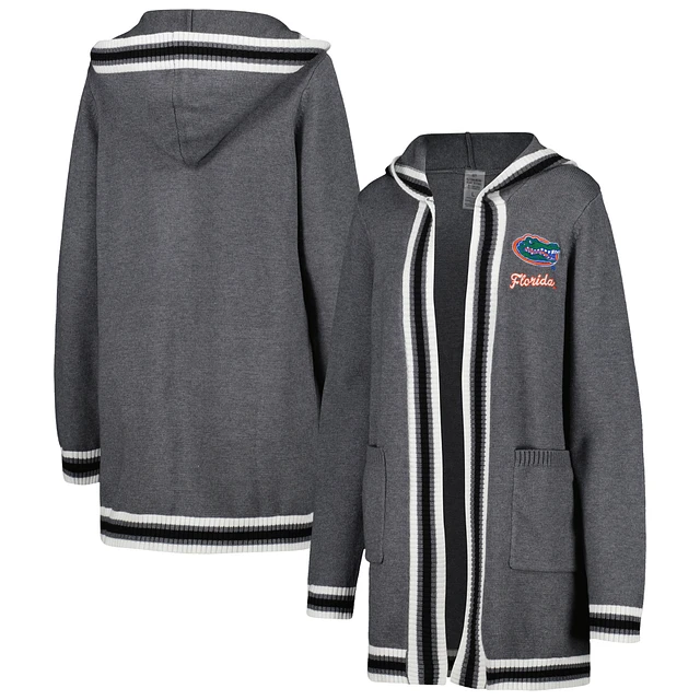 Women's Gameday Couture Charcoal Florida Gators One More Round Tri-Blend Striped Hooded Cardigan Sweater