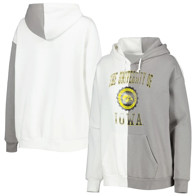 Women's Gameday Couture Gray/White Iowa Hawkeyes Split Pullover Hoodie