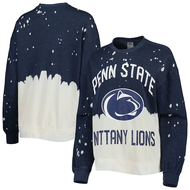 Women's Gameday Couture Navy Penn State Nittany Lions Twice As Nice Faded Dip-Dye Pullover Long Sleeve Top