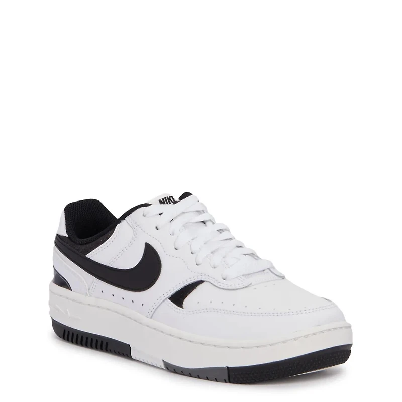 You'll love the heritage B-ball style of these women's Nike Gamma Force white/black summit white iron grey fashion athletic shoes. Crafted with suede and mesh upper, these athleisure sneakers offer a dimensional look while offering durability. Collar materials pay tribute to vintage sport while a subtle platform elevates your appeal. Cushioned footbed offers daylong comfort, rubber midsole provides reliable support and Speckled Nike Grind rubber outsole contains at least 5% recycled content goes easy on the environment.