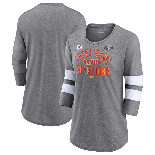 Women's Heather Gray Kansas City Chiefs Super Bowl LVIII Champions Under the Lights Tri-Blend 3/4-Sleeve T-Shirt